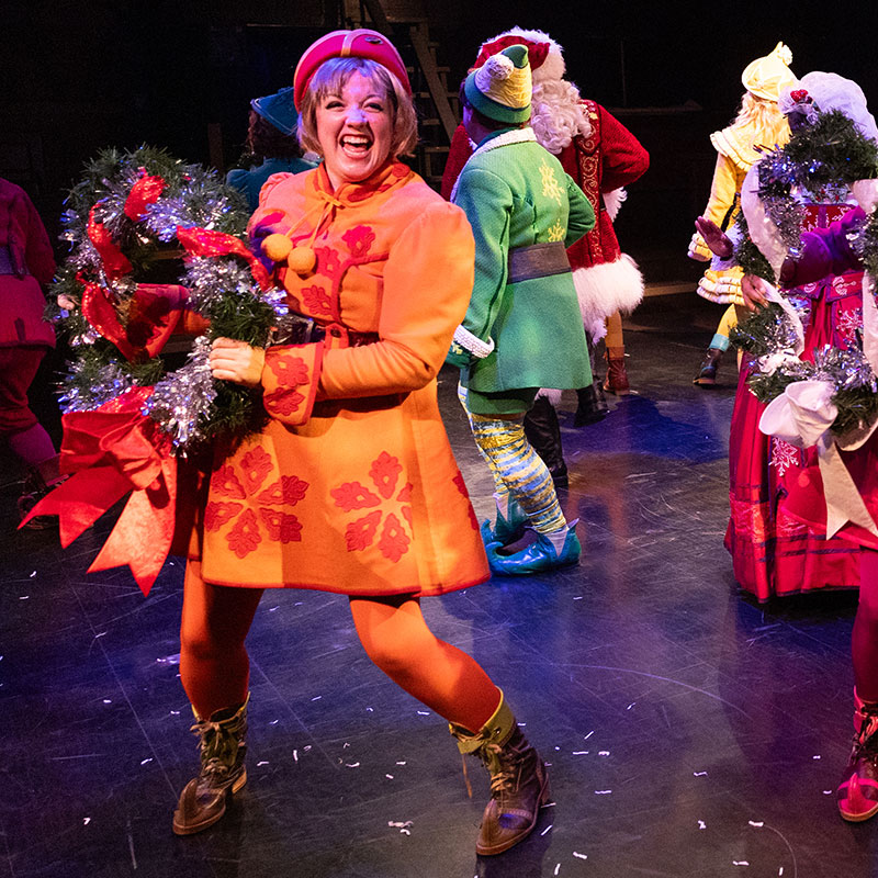Catch Valerie in the ensemble at most performances, swapping wigs like a mad woman and playing everything from an elf to the Macy's perfume lady. She'll be on in her understudy track as Buddy's step-mom, Emily Hobbs, Nov 23-30 and Dec 16.